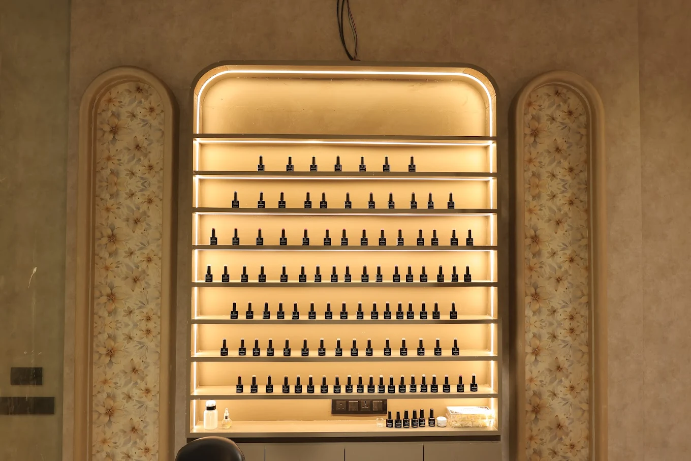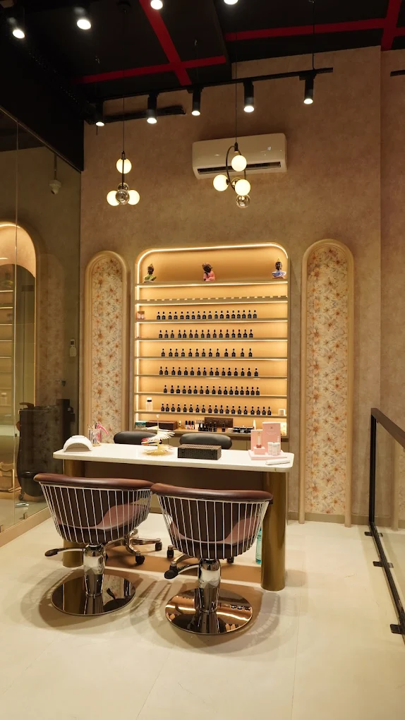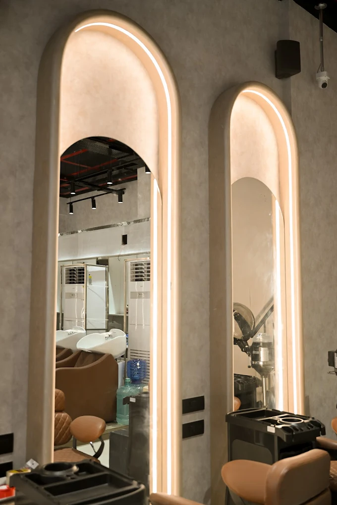 This hospitality project brings to life a thoughtfully designed salon and spa, where every detail enhances the guest experience. The space features warm-toned textured walls and elegant arch forms that flow seamlessly across partitions, mirrors, and storage units, creating a cohesive and inviting aesthetic. Floral pattern wallpapers add a delicate touch of beauty, while each spa room is curated with soft lighting to evoke a sense of calm and relaxation. Carefully chosen health-related artefacts add character and elegance, and each storage unit is crafted with precision for both form and function. The reception area makes a lasting first impression, with a textured backdrop highlighting the brand logo, setting the tone for a serene and luxurious retreat.